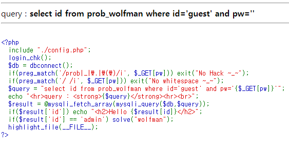 하지만 공백이 필터링 되어있어서 공백 우회를 위해 %20을 썼다.