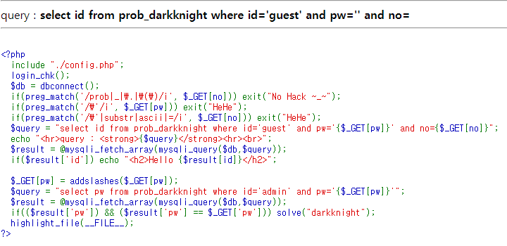 pw와 no 모두 '를 필터링 하고 있고, no는 substr과 ascii를 필터링 하고 있다.