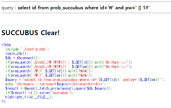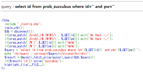 id와 pw를 GET으로 받는데, 둘 다 '를 필터링 하고 있다.