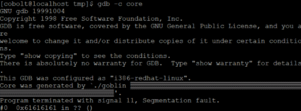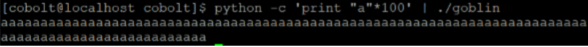 python -c 'print "a"*100' | ./goblin
