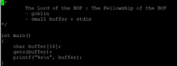버퍼가 16바이트이고 이번엔 strcpy가 아니라 gets로 buffer에 입력 받아서 출력한다.