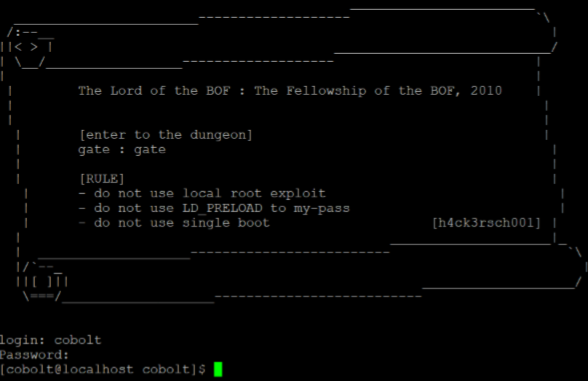 이전 문제인 gremlin에서 구한 cobolt와 PW인 hacking exposed를 이용해 로그인한다.