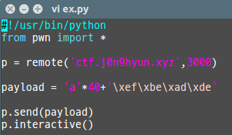 -> payload에 p32(0xdeadbeef) 라고 써서 넘겨줘도 된다.