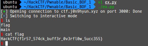 HackCTF{f1r57_574ck_buff3r_0v3rfl0w_5ucc355}