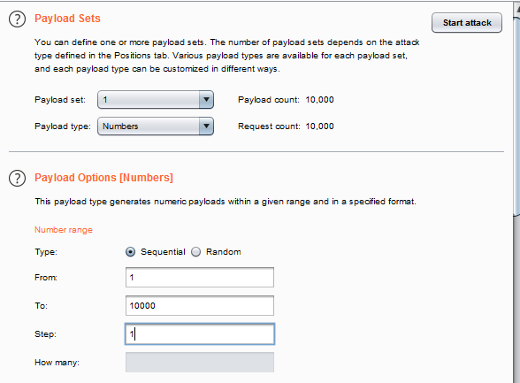 burp suite의 intruder 기능을 사용하여 1부터 10000까지을 한다.
