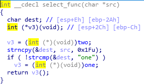 select_func에서 one을 넣으면 one이 실행된다고 해서 one을 넣어보았다.