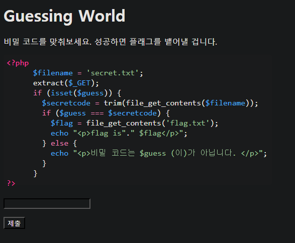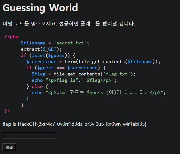 여기서 취약점은 extract($_GET) 이다.